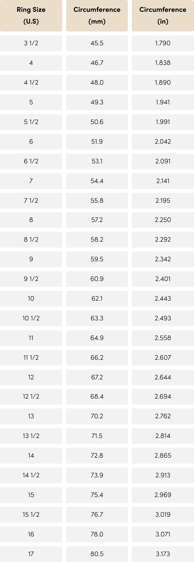 Ring Size Chart