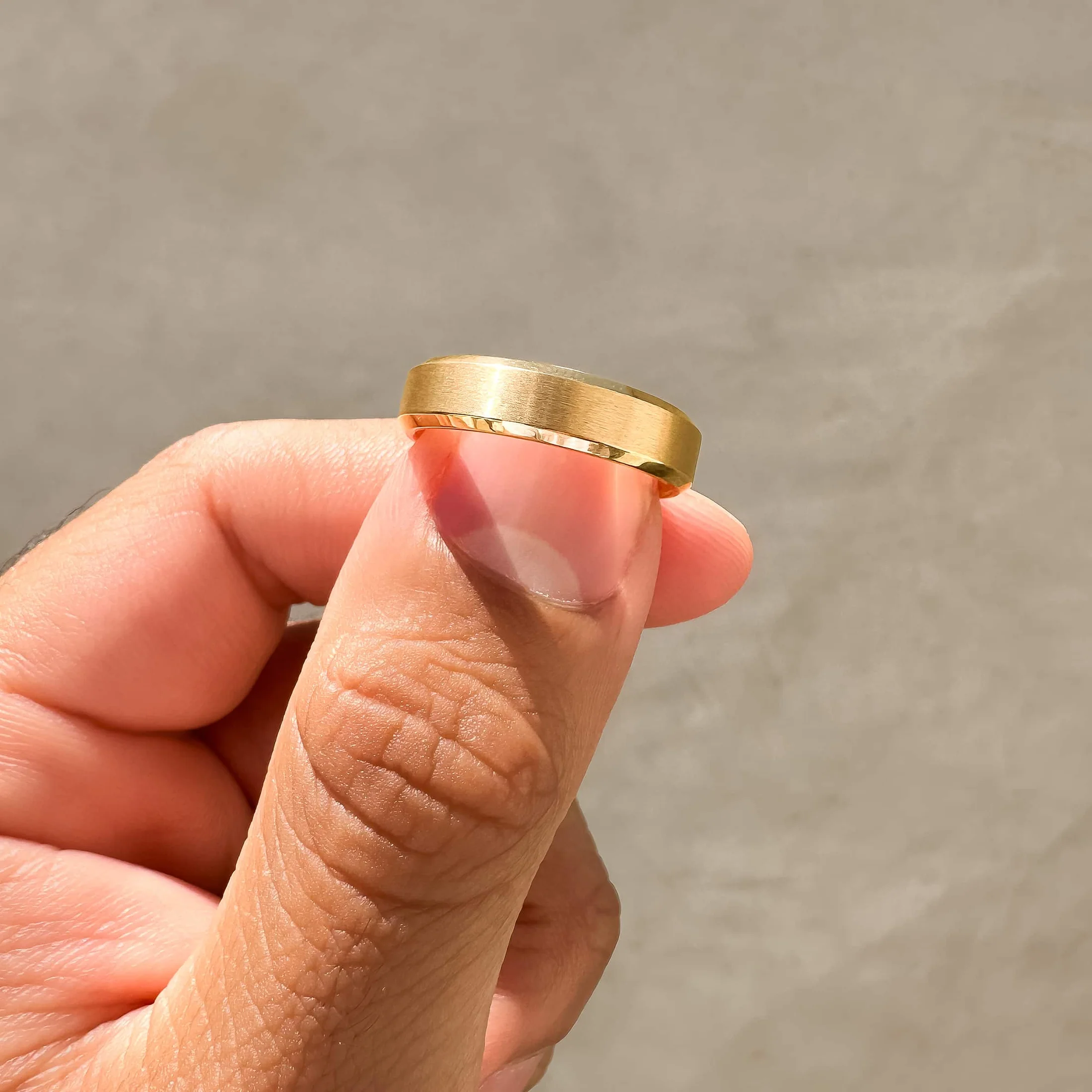 Versatile and inclusive, it serves as an exceptional choice for married couples, the engaged, or anyone seeking to enhance their ring collection with a top-quality addition. The price, fit, size, and brushed center—this piece has everything! Also available in silver, black, and rose gold.